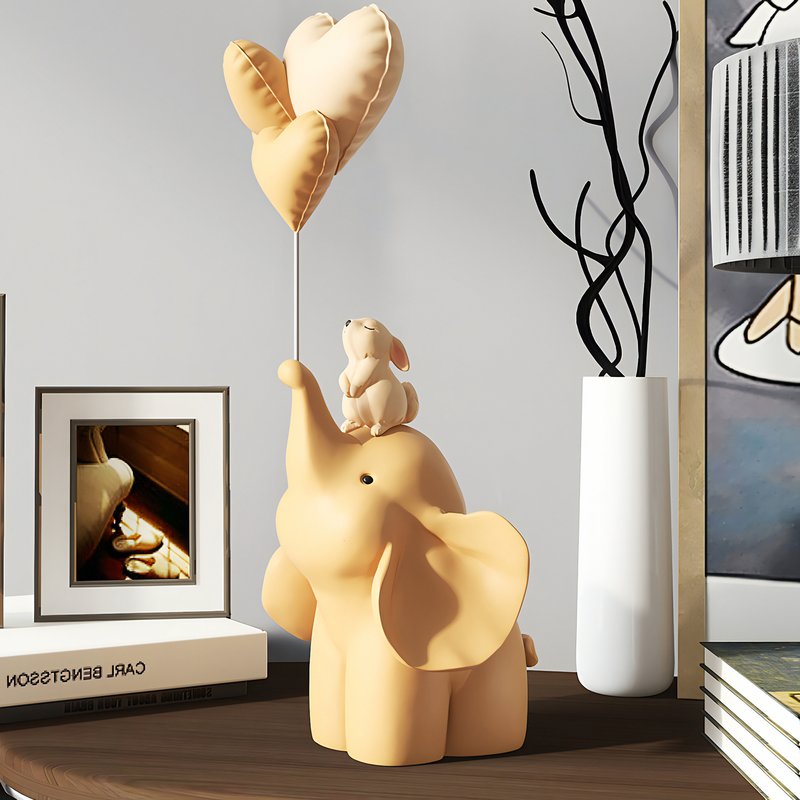 Statue d'éléphant en résine pour enfants avec ballons en forme de cœur